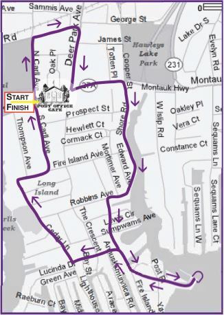 The race will officially begin on Deer Park Avenue and Railroad Avenue going south, head west on Montauk Highway around Argyle Lake to Railroad Avenue, south on Deer Park Avenue and then east on Montauk Highway to continue the race to West Islip and over the bridge and end in Gardiners Park.